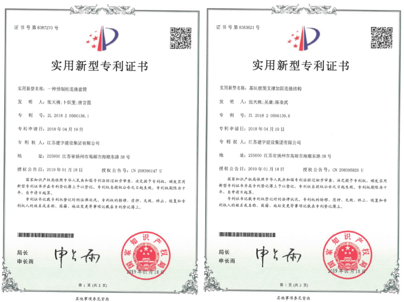 在集團公司和科技創新小組的指導下,在工程部及各分公司的協作配合下,集團公司2018年科技創新工作收獲頗豐。截止目前,還獲得2項江蘇省省級工法、2項江蘇省級新技術示范工程,多項QC成果分獲江蘇省級、南京市級及揚州市級等獎項,已報送的2項發明專利處于等待核查階段。