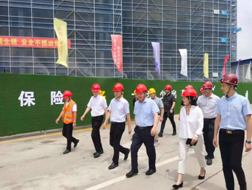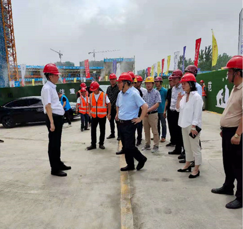 6月28日上午,南京市委常委、江北新區(qū)黨工委專職副書記羅群視察集團承建的國際化名醫(yī)中心項目,并督導安全生產工作。新區(qū)中央商務區(qū)主任陳建鵬、新區(qū)建設與交通局長許蕾等部門負責人隨同檢查,集團董事長管民良、副總經理張幫華等在項目現場陪同。