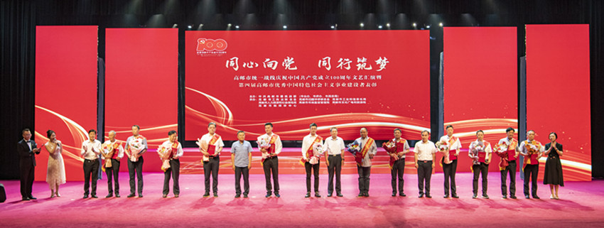 活動現(xiàn)場市領導為第四屆高郵市優(yōu)秀中國特色社會主義事業(yè)建設者和高郵市首屆“最美同心人”獲得者進行了表彰,集團董事長登臺領獎并合影留念。