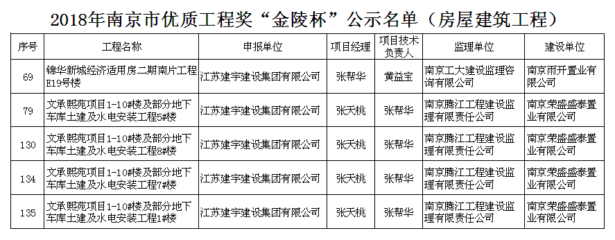 近日,從南京市城鄉(xiāng)建設(shè)局、南京市建筑行業(yè)協(xié)會(huì)傳來(lái)喜訊,集團(tuán)南京分公司承建的“錦華新城E19#”、“文承熙苑1#、5#、7#、8#”項(xiàng)目一舉獲得五個(gè)“2018年南京市優(yōu)質(zhì)工程獎(jiǎng)-金陵杯”,評(píng)優(yōu)率100%,其中二項(xiàng)工程擬推薦申報(bào)省“揚(yáng)子杯”。