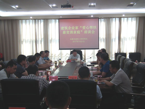 21日下午,市建管局十七樓會議室內愛心涌動,建管局徐曉君局長主持召開建筑行業(yè)企業(yè)家"愛心幫扶最貧困家庭"座談會,卞紅蓮書記、王斌、緒軍、張青等副局長出席,集團黃益寶副總參加本次活動。