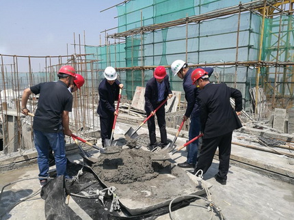 綠地泰州世紀城項目是揚州分公司繼上市公司蘇高新地產名澤園項目后,與世界500強綠地集團合作的又一新力作。封頂儀式現場,項目建設方夏超總經理對我公司在項目施工中所展現出來的一流的管理、精湛的技術表示了贊賞及充分的肯定,同時表達了有更多的機會和建宇合作的良好愿望,讓建宇鐵軍風采在市場得到充分的展現!
