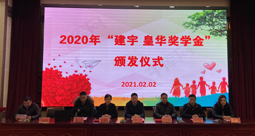 學習成就夢想,愛心點燃希望。繼集團元月開啟的卸甲鎮敬老院慈善活動首站之后,2月2日上午,因疫情影響而推遲的2020年度“建宇·皇華獎學金”頒發儀式在高郵中學報告廳舉行。集團董事長管民良、皇華國際大酒店董事長王衛紅、集團副總經理黃益寶、財務總監郭正基,以及高郵中學呂所勇副校長、獲獎學生和家長代表等參加了發放儀式。儀式由高郵中學政教處主任顧福軍主持。這也是集團連續第五年在高郵中學頒發獎助學金。