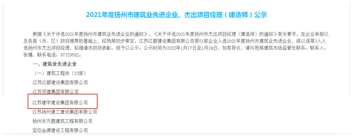 多項榮譽的獲得,是各級政府、主管部門對集團2021年各項工作的肯定,凝聚了所有建宇人奮斗的汗水,值得所有建宇人自豪,也是對今后工作的巨大鼓舞和鞭策。集團全體員工表示將以此次表彰為新的起點,開拓奮進、精益求精,充分發(fā)揮引領(lǐng)示范作用,進一步做優(yōu)做大做強,為揚州市建筑業(yè)發(fā)展做出更大貢獻(xiàn)!