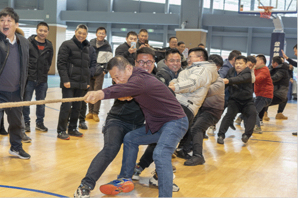 下午,第三屆新春文體活動在市文體中心運動場館首先拉開帷幕,活動共有四大項,分別是拔河、十人九足、羽毛球、籃球,每一個分公司和部門都派出了精銳部隊。拔河比賽場面異常激烈,每一個代表隊都使出了吃奶的力氣,經過數輪角逐,最終南京分公司代表隊摘得拔河和十人九足團建活動雙冠軍。賽出了風采,增強了團隊團結協作精神及凝聚力。