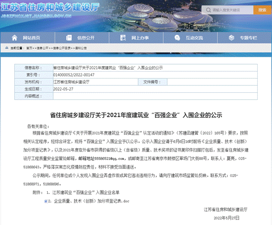 近日,江蘇省住房和城鄉(xiāng)建設(shè)廳公布了2021年度江蘇省建筑業(yè)百強(qiáng)企業(yè)入圍名單。集團(tuán)憑借自身綜合實(shí)力,再次入圍2021年度江蘇省建筑業(yè)“百強(qiáng)企業(yè)”榜單!