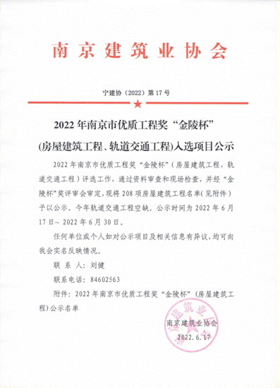 “金陵杯”是南京市建筑工程質量領域的最高榮譽,代表著全市范圍內各建筑施工企業質量管理的領先水平,評審標準高,數量控制嚴。