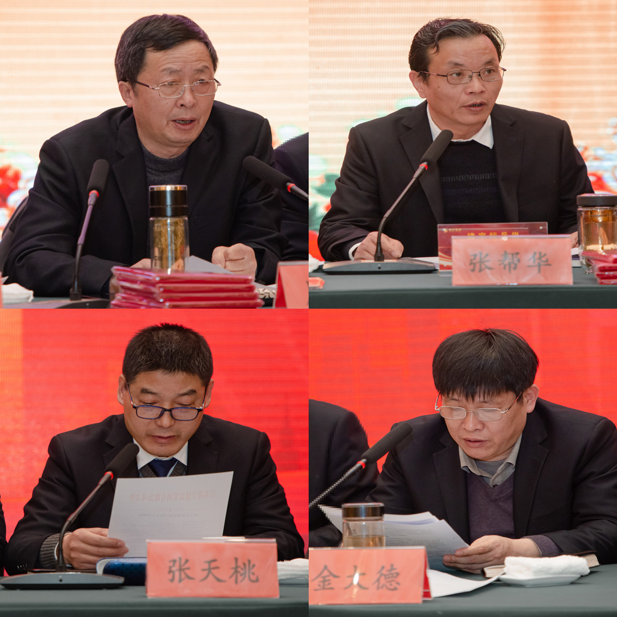 副總經理張幫華主持會議,副總經理周耀庭宣讀表彰決定,副總經理張天桃宣讀集團領導層工作分工的通知;副總經理金大德宣讀了新一年度助理級以上干部任命決定。