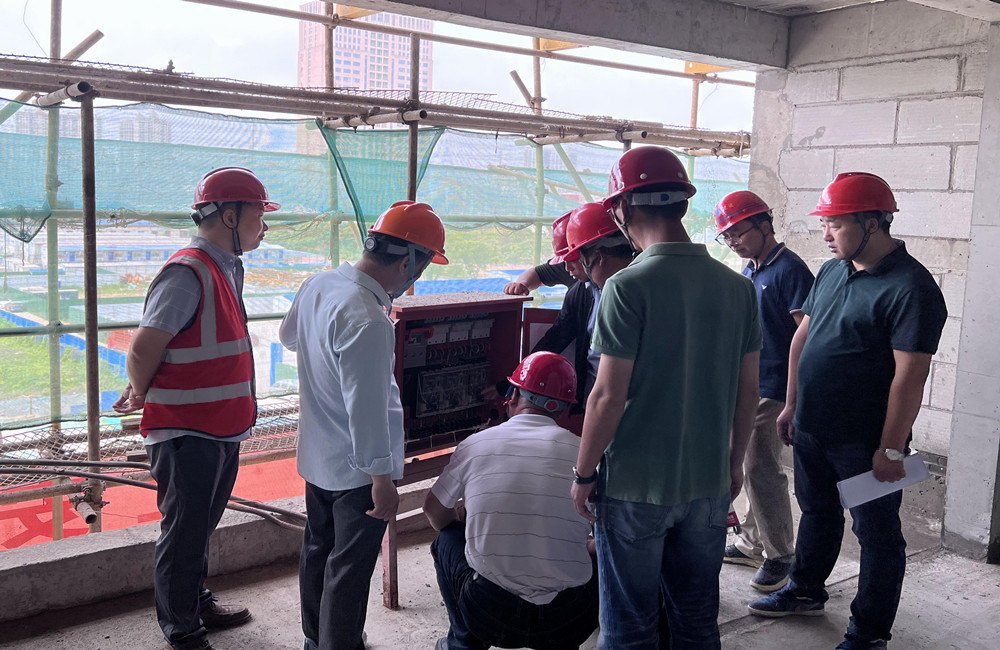 隨后全體人員分為兩組,在各組組長的帶領下先后對項目現場進行了全方位的安全生產大檢查,重點排查大型機械、腳手架防護、臨邊洞口、臨時用電、消防設施設備等關鍵部位。
