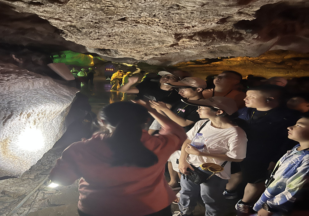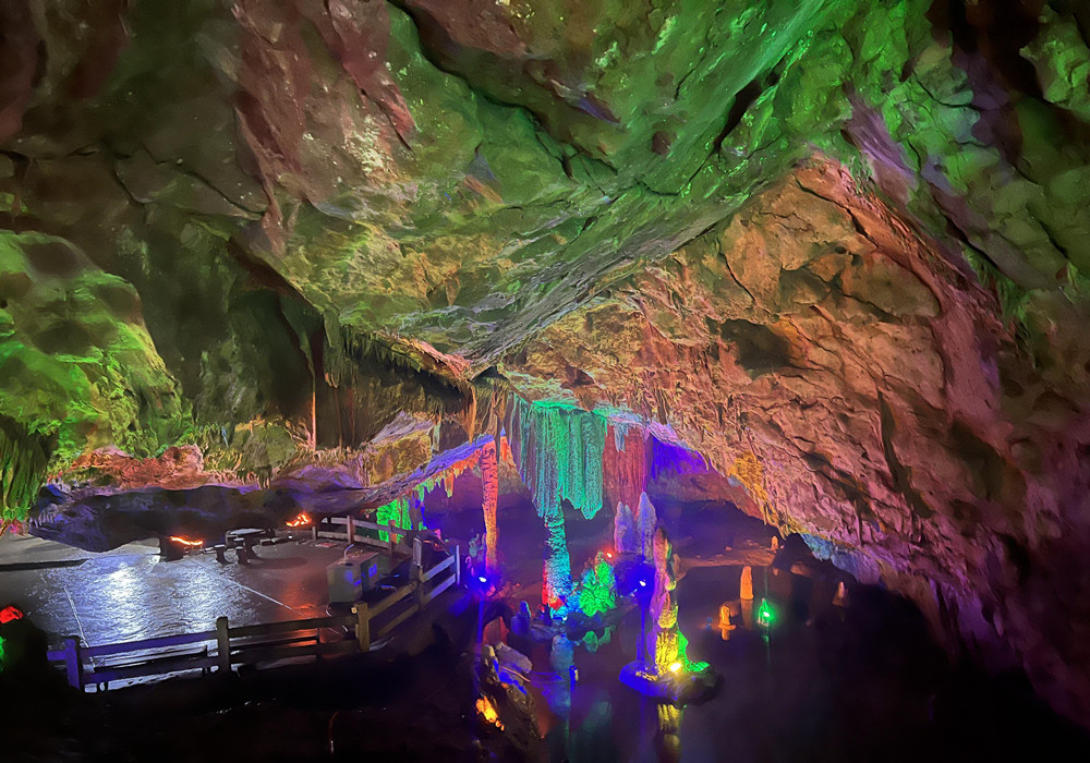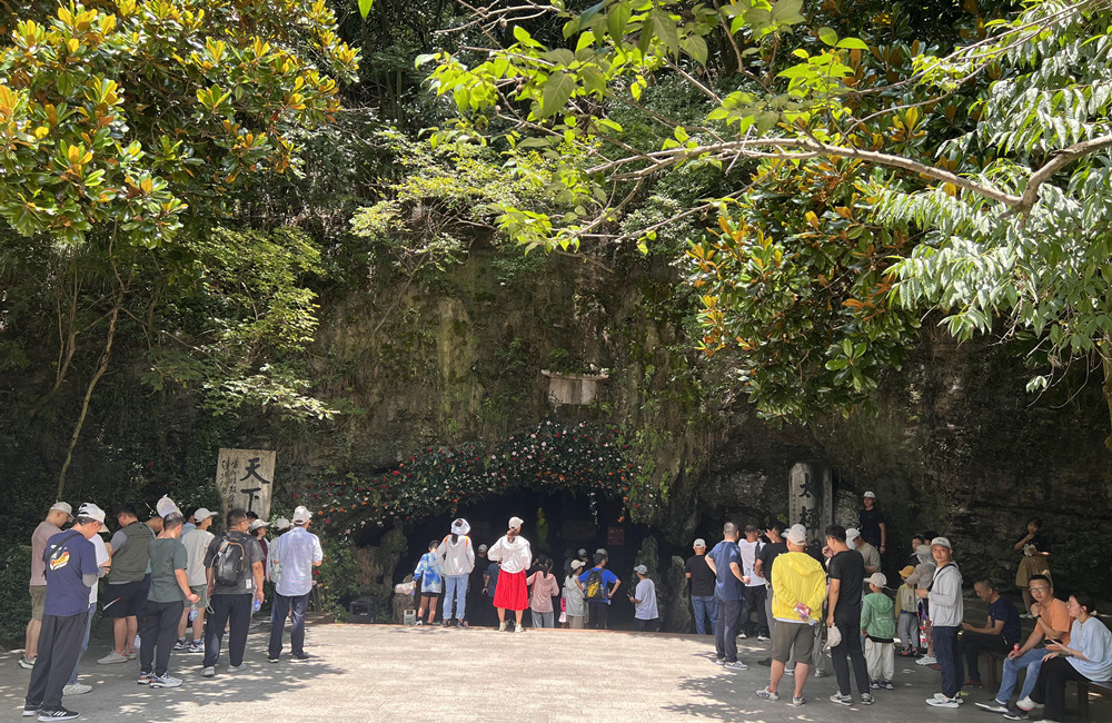 洞內冬暖夏涼,正是夏日避暑的好去處。旱洞內光影變幻、奇景不斷,鐘乳奇石造型各異。水洞內石景同樣瑰麗神秘、如夢如幻,乘坐小船穿行其中,別有一番趣味。這里既有石的莊嚴,又有水的靈動,讓人流連忘返。