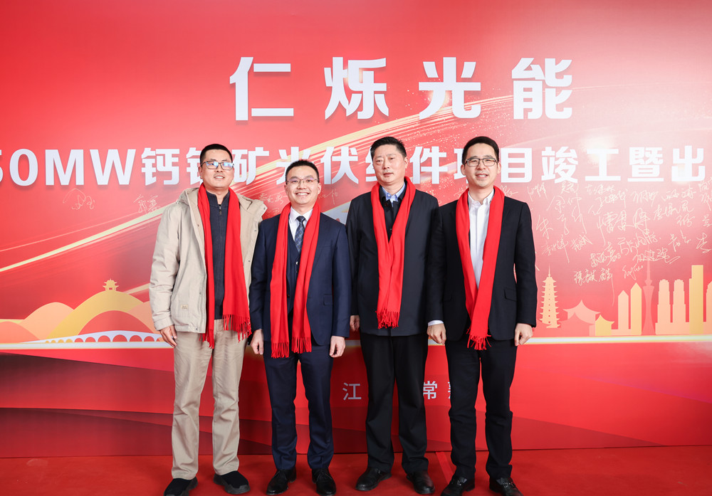 1月11日,集團以中創源控股戰略投資的仁爍光能150MW鈣鈦礦組件項目竣工暨出片儀式在常熟成功舉辦,集團董事長管民良、中創源控股總經理管瑋受邀出席并參加股東大會。