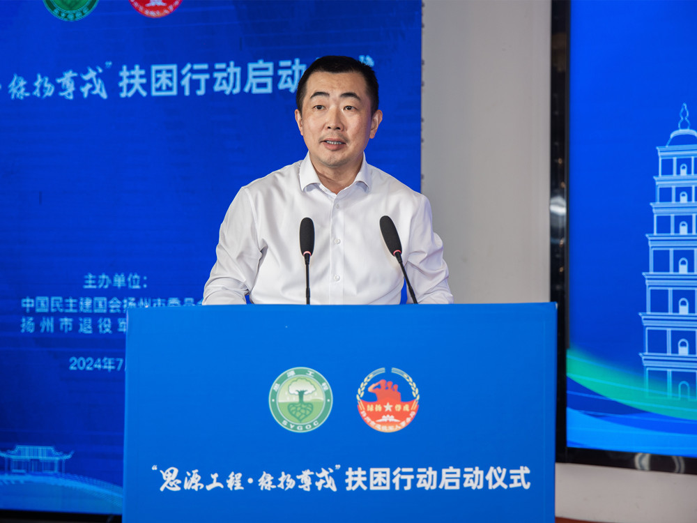 7月30日下午,由中國(guó)民主建國(guó)會(huì)揚(yáng)州市委員會(huì)、揚(yáng)州市退役軍人事務(wù)局聯(lián)合主辦的“思源工程·綠揚(yáng)尊戎”扶困行動(dòng)啟動(dòng)儀式在郵舉行。揚(yáng)州市委常委、統(tǒng)戰(zhàn)部部長(zhǎng)丁四海和高郵市委書(shū)記張利、民建揚(yáng)州市主委周啟泉等多位領(lǐng)導(dǎo)蒞臨現(xiàn)場(chǎng),共同見(jiàn)證這一公益盛事。集團(tuán)董事長(zhǎng)管民良作為民建高郵支部副主委及這項(xiàng)公益活動(dòng)的率先響應(yīng)企業(yè),應(yīng)邀出席活動(dòng)并發(fā)表了公益倡議。