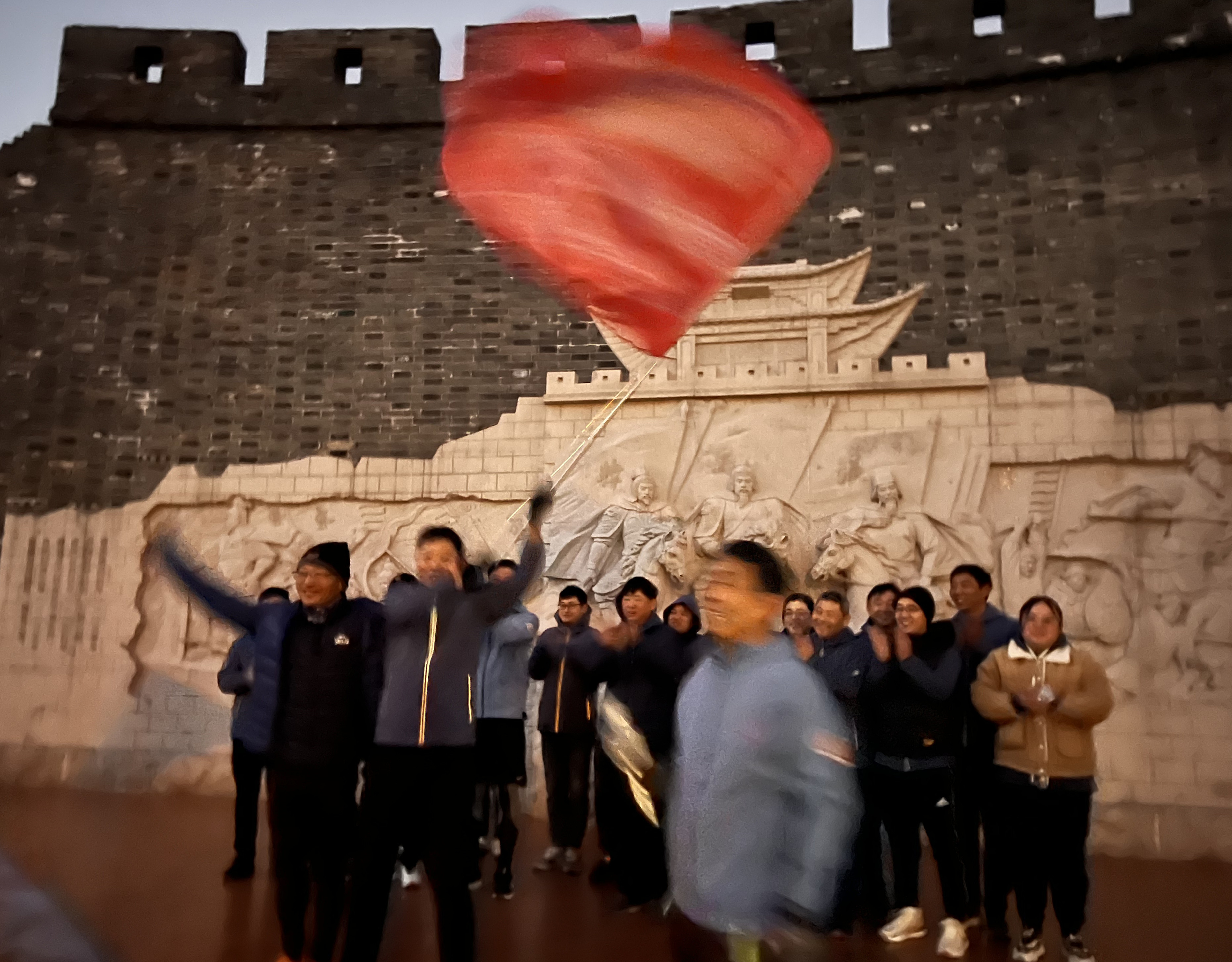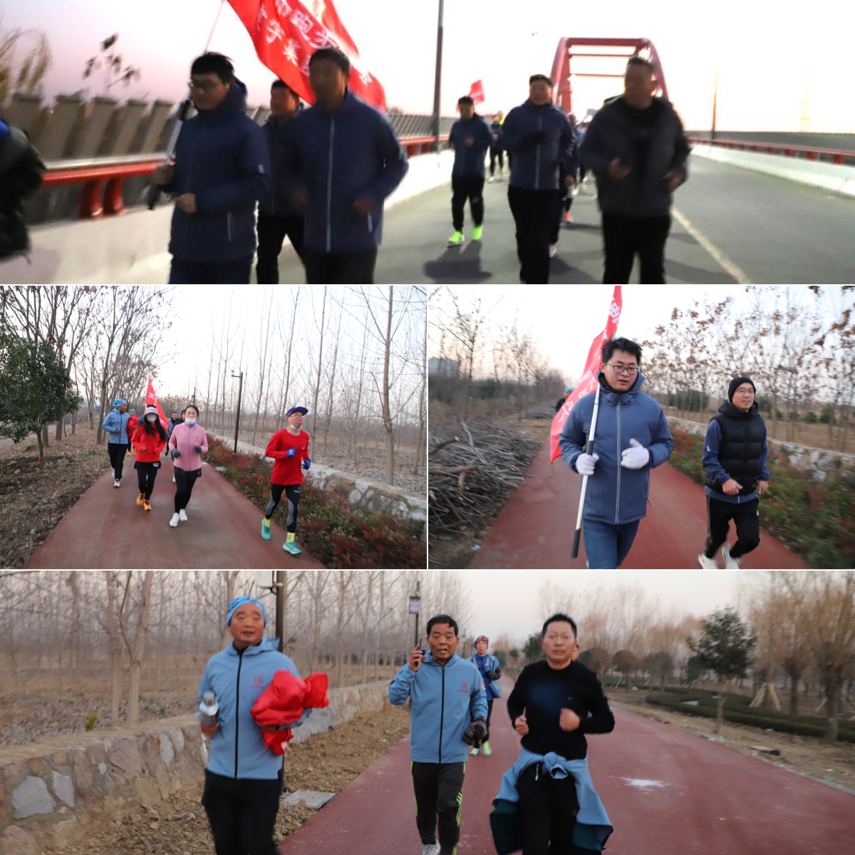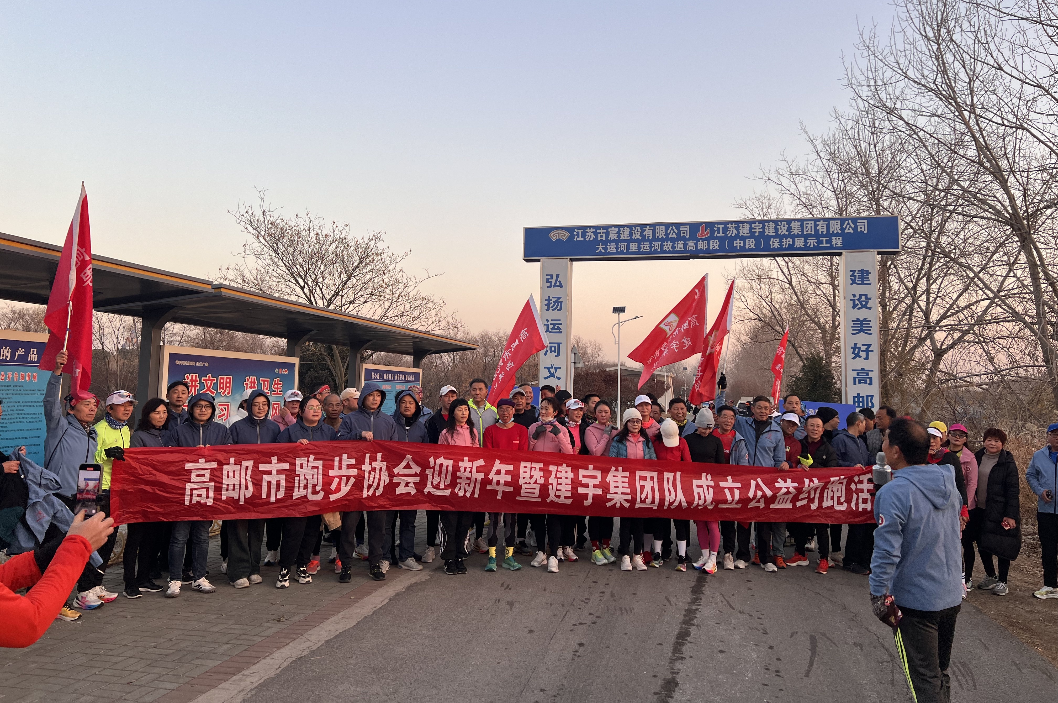 成立授旗儀式結束后,建宇跑團率先開跑,拉開了新年第一跑帷幕。跑友們從甕城遺址公園出發,沿著通湖路、運河東堤、運河二橋等歷史遺跡與美麗風光,向集團文保市政公司承建的運河明清故道工程進發。