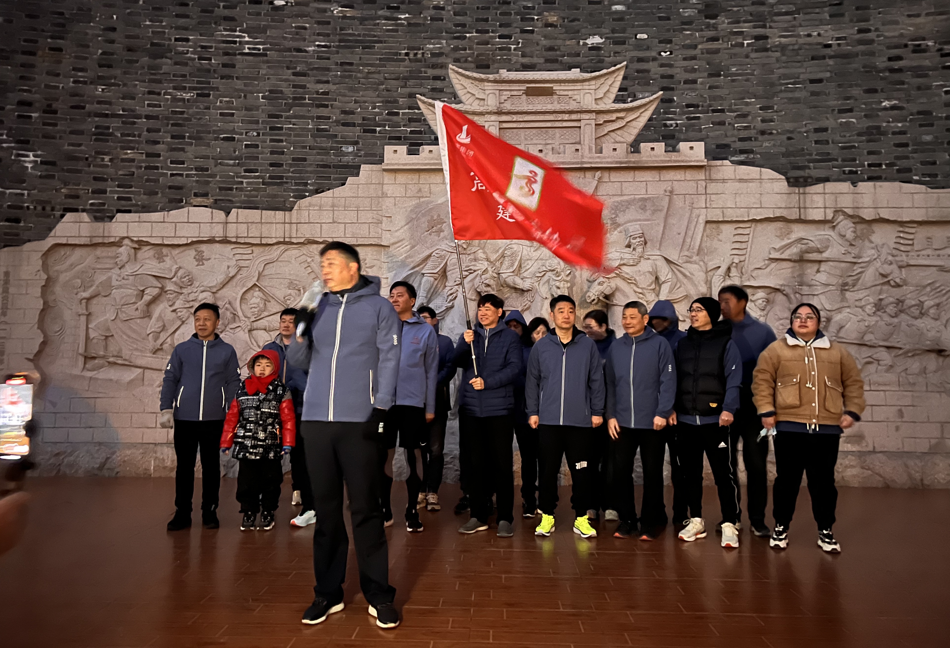 元旦清晨6點半,高郵甕城遺址公園內人聲鼎沸,來自市跑步協會16隊的150余名跑友們準時集結,共同見證了建宇跑團的誕生,由集團董事長和總經理率領的20名跑友身著統一的跑團服裝,精神抖擻地站在活動舞臺中央,隨爺爺而來的只有七周歲的郭楷文也精靈可愛的站立隊中,成為了活動現場的一道亮麗風景線。