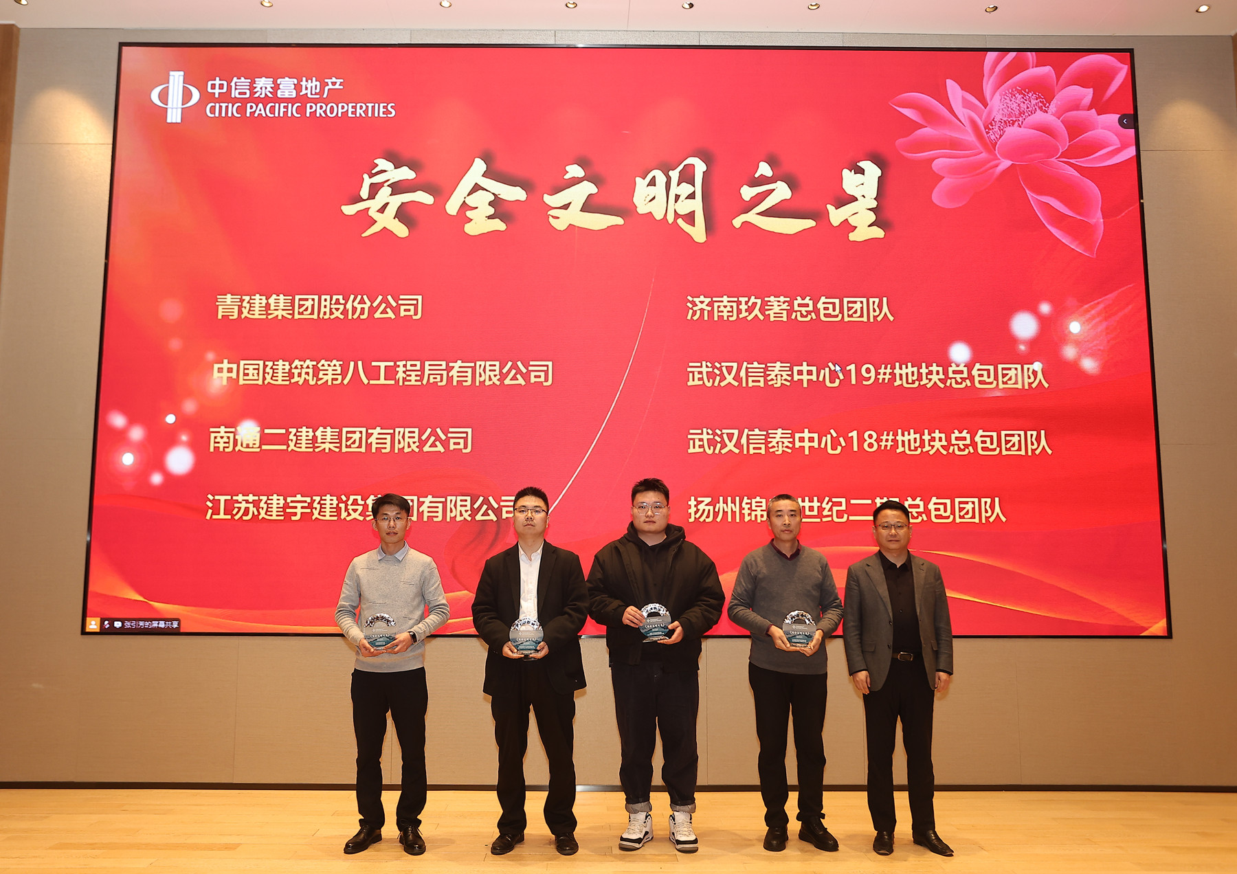 會上,集團憑借在安全文明施工管理方面的卓越表現(xiàn),從眾多優(yōu)秀的供應(yīng)商中脫穎而出,榮獲了中信泰富地產(chǎn)年度安全管理類的最高獎項——“2024年度安全文明之星”獎。僅有四家總包單位獲此殊榮,這一榮譽是對集團長期以來堅持精細管理、尤其是對揚州錦麟世紀二期項目部狠抓安全管理的充分肯定。