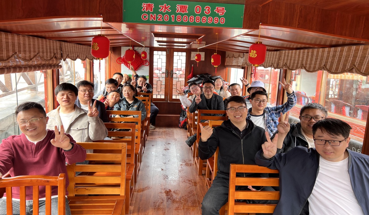 活動伊始,大家在景區入口處留下了一張充滿活力的合影,記錄下這意義非凡的瞬間。隨后,眾人登上畫舫船,緩緩駛入濕地核心區。船行碧波上,兩岸枝繁葉茂的樹木遮天蔽日,宛如一把把巨大的綠傘,為人們撐起一片清涼的世界;側耳傾聽,鳥語蟲鳴交織成一曲美妙的自然樂章,讓人仿佛置身于一個世外桃源。清風徐徐,帶著池杉的芬芳與水汽的清涼,輕輕拂過臉龐,讓人心曠神怡。大家沉醉在這如詩如畫的生態美景中,感受著大自然的神奇與魅力,心中滿是對生活的熱愛與對未來的期待。