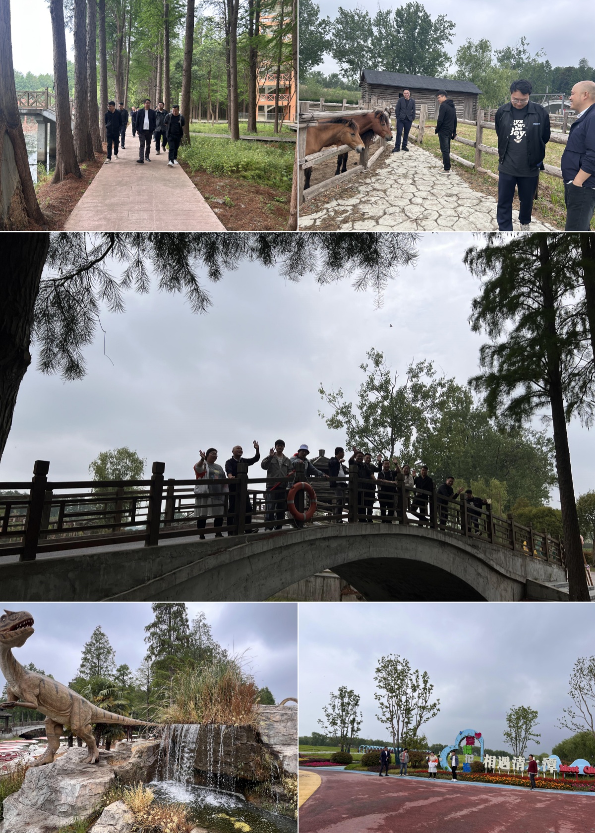 下船后,大家沿著公園蜿蜒曲折的小徑悠然漫步。小徑兩旁,繁花似錦,綠草如茵,仿佛是大自然精心繪制的一幅畫卷。途徑四季花海,更是美不勝收,不同顏色種類的花卉在此匯聚,綻放出各自獨特的魅力,讓人仿佛置身于花的海洋。大家時而駐足觀賞,用相機捕捉下夏日盛景中的每一個精彩瞬間;時而歡聲笑語,分享著彼此在工作與生活中的趣事。一場濕地徒步與自然觀察活動就此展開,大家仔細探尋著濕地中的每一處奇妙景觀,仿佛置身于一個充滿奧秘的生態課堂。行至小徑中段,揭陽塔映入眾人眼簾。大家難掩興奮,紛紛拾級而上,登高觀景。從塔頂下來后,不遠處便是“侏羅紀”主題區域。區域內一尊尊恐龍模型造型逼真、姿態各異,以獨特的方式向大家問好。離開“侏羅紀”區域,小型動物園出現在眼前。圍欄內,小矮馬、小羊和小兔子們正悠閑地吃著草,大家紛紛圍上前去,與小動物們展開互動。